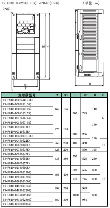 | FR-F840-00250-2-60 | 3相380V,額定23A,代替FR-F740-11K-CHT | ||
