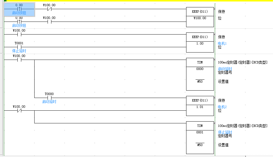 能實現(xiàn)以下功能嗎:單按鈕控制2臺設(shè)備,第1次按下時1設(shè)備啟動,延時幾秒后2設(shè)備啟動.第2次按下時2設(shè)備停止,延時幾秒后1設(shè)備停.請給個提示.謝謝.