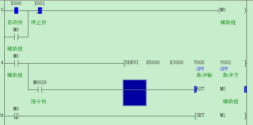 m8029我記得是定位指令完成之后導通一個掃描周期的吧,再者你這個程序中在一個掃描周期中之前已經rst m0了,m0即為低電平,所以之后的程序都是不導通的。覺得你還要了解一下PLC的運行機制。