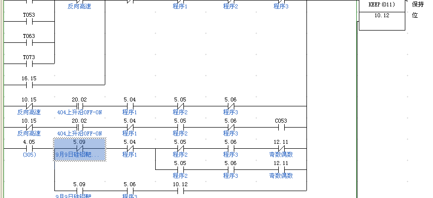 圖1 這個程序是在開關4.05接通的時候把Keep 10.12 值置為1