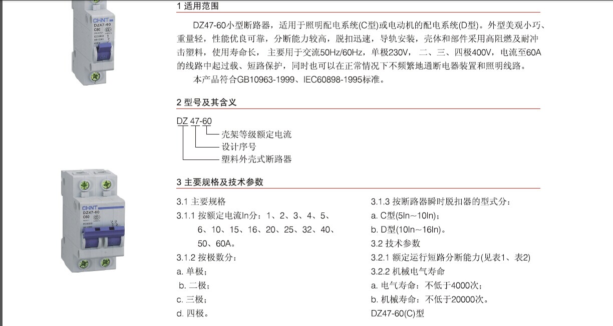 不知道是不是你所說的!看正泰斷路器DZ47-60的說明吧!