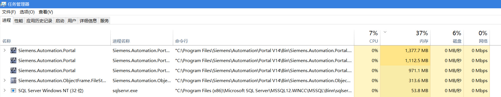 剛才終于在Win10 64位系統裝上TIA Portal V14(STEP 7+WinCC+PLCSIM)簡單試用了下。實際運行感覺比V13版本順暢了不少,但是對系統資源的占用還是挺高,配置低的電腦運行比較吃力。打開一個簡單的工程就占用了三點幾G的內存,CPU倒是沒怎么占用。