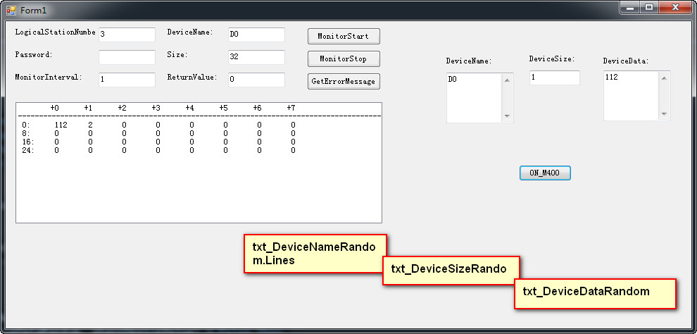 iReturnCode = AxActUtlType1.WriteDeviceRandom2(szDeviceName, iNumberOfDeviceName, sharrDeviceValue(0))