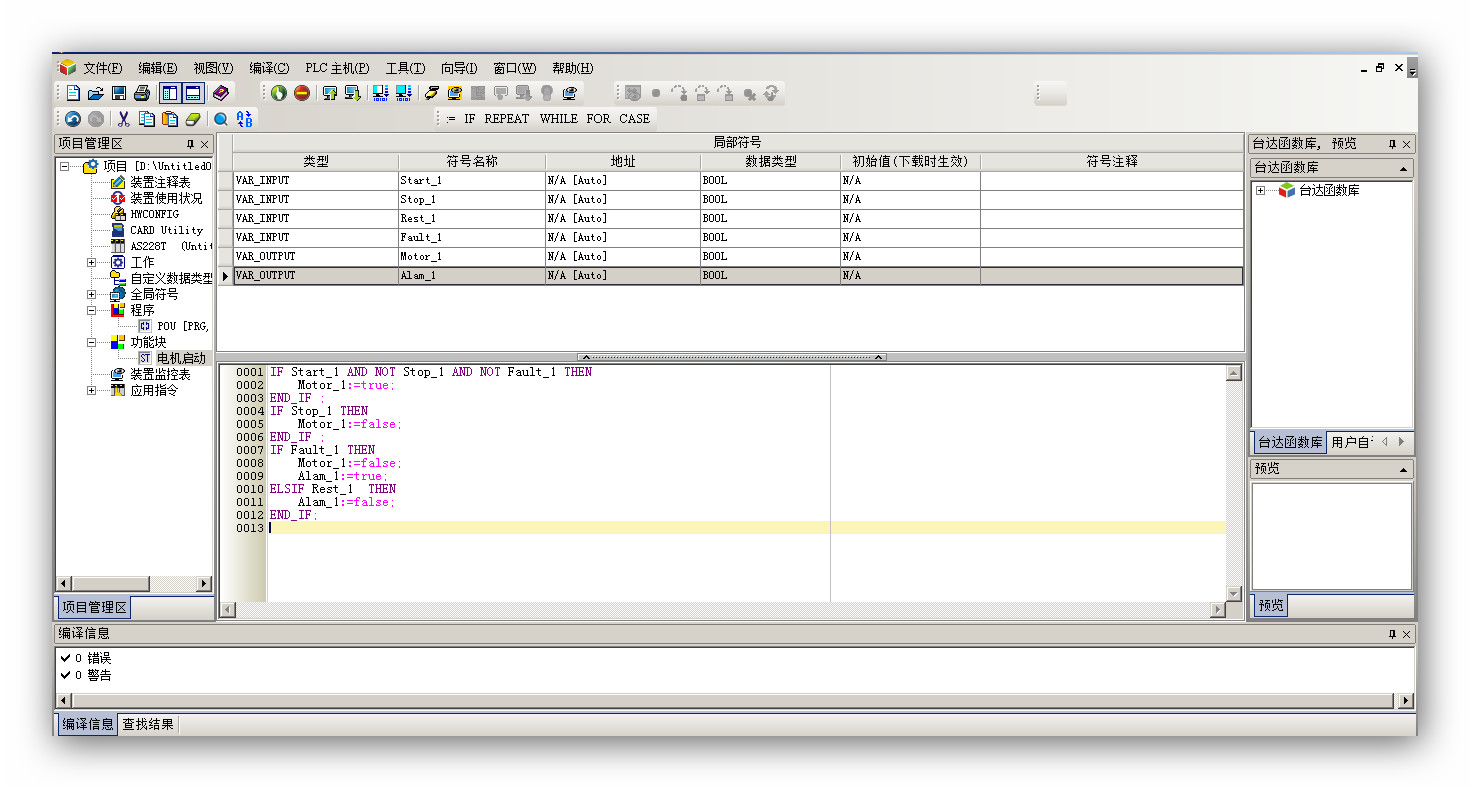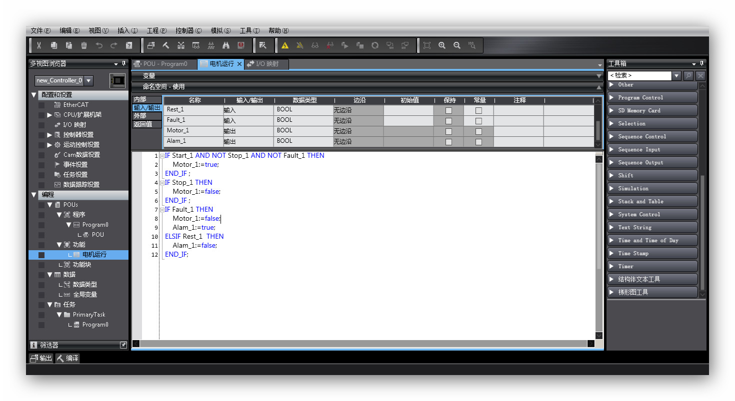 IF Start_1 AND NOT Stop_1 AND NOT Fault_1 AND NOT Alam_1 THEN (* 啟動(dòng)條件 *)