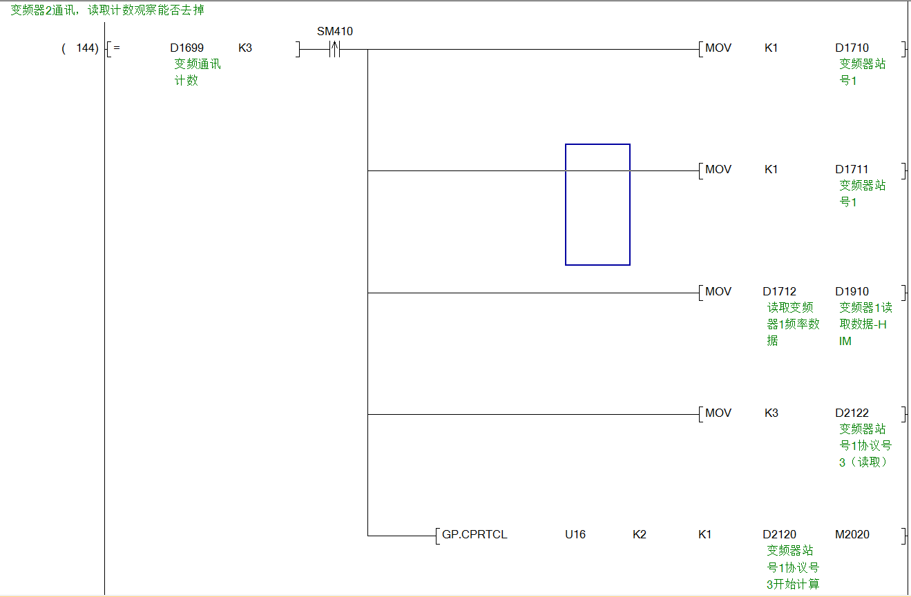 因?yàn)檫@個(gè)指令的執(zhí)行機(jī)制是先執(zhí)行第一條數(shù)據(jù),收到響應(yīng)后再繼續(xù)執(zhí)行,關(guān)掉變頻器之后就卡死在其中的一步了,所以通信中斷。