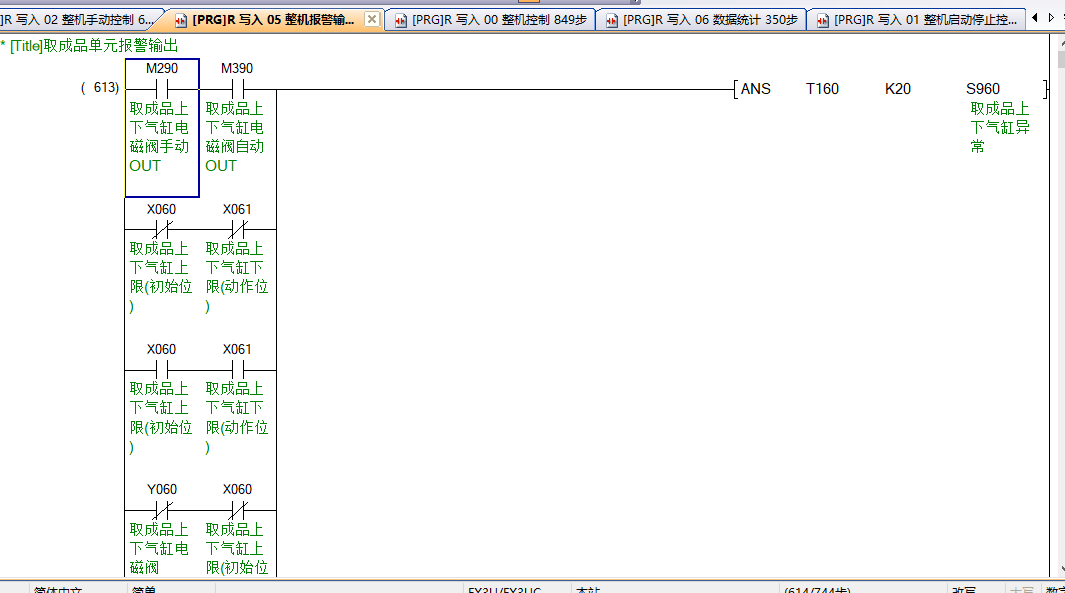 就拿M290和M390來說吧,假設自動運行時M390--ON的時候,Y60--ON,這個時候進行手動模式,不會影響M390---ON,進行手動操作讓M290變成ON的,這樣M290常閉點就會斷開M390常開的那條路,也就是控制Y60斷開。如果M290交替再斷開,下面那條路又導通,這樣就可以實現Y60狀態進行轉換,當手動操作完后,進行自動模式后,按啟動按鈕就會把手動操作全部復位掉,又自動變到之前的自動狀態。