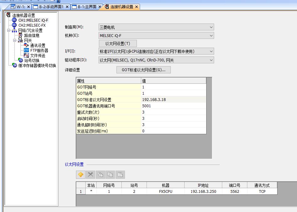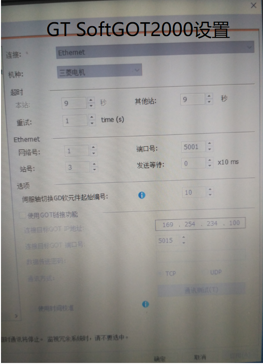 十分感謝你技術(shù),建立連接我將PLC的IP地址、GT Works3編寫的觸摸屏程序連接地址設(shè)置成一樣,就OK了