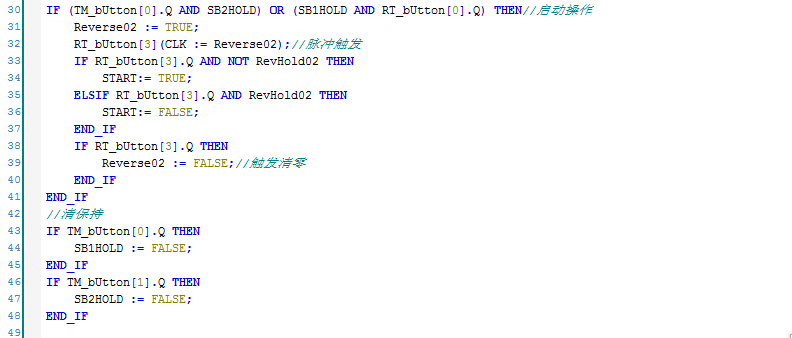 雙按鈕啟動(dòng)設(shè)備,要求按單邊按鈕可啟動(dòng)某夾子,再次按單邊按鈕時(shí)可關(guān)掉夾子,雙手啟動(dòng)時(shí)又執(zhí)行了一次單邊按鈕(比如第一次按單邊夾住,接著雙鈕啟動(dòng)設(shè)備觸發(fā)第二次),因?yàn)椴煌絾?wèn)題造成夾子又松開(kāi),大神請(qǐng)教下有什么好方法,我現(xiàn)在有時(shí)雙鈕啟動(dòng)時(shí)沒(méi)有關(guān)夾子,有時(shí)雙手啟動(dòng)時(shí)關(guān)掉了的情況