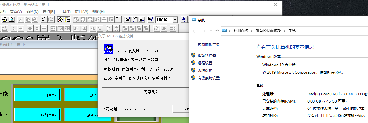 WIN7 64 旗艦版 MCGS嵌入版 7.7(1.7) 正常打開