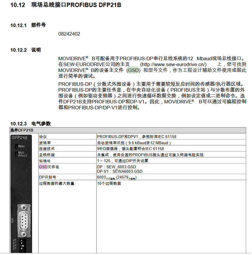 沒說是用的是什么通訊模塊,盲猜你用的是PROFIBUS DFP21B,SEW官網都有下載的。