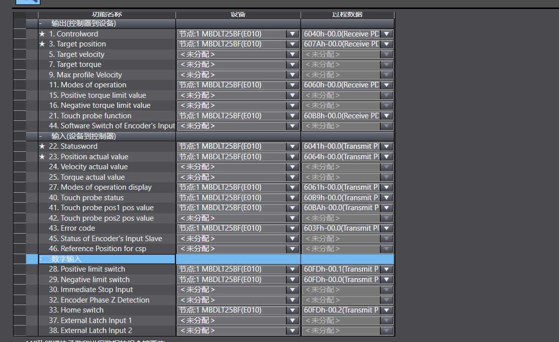 是的,用的松下、匯川等等支持EtherCAT的伺服,想知道這里面各個映射的作用,哪些是必要配置,哪些又可以忽略,還望各位師傅多多賜教,小弟萬分感謝!