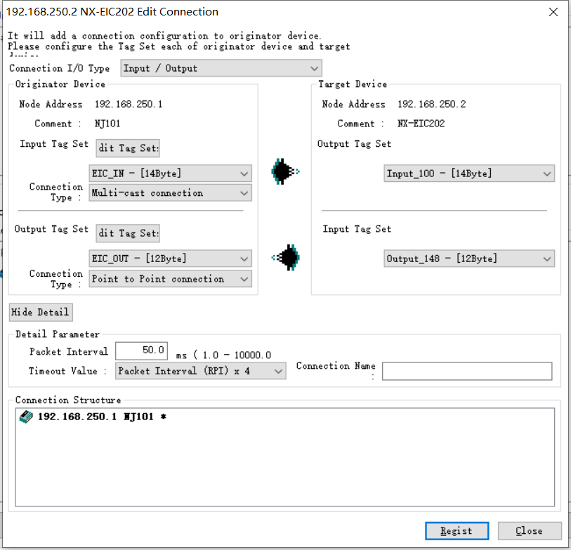 NJ101連接EIC202  IO模塊各2的設定,標簽的連接