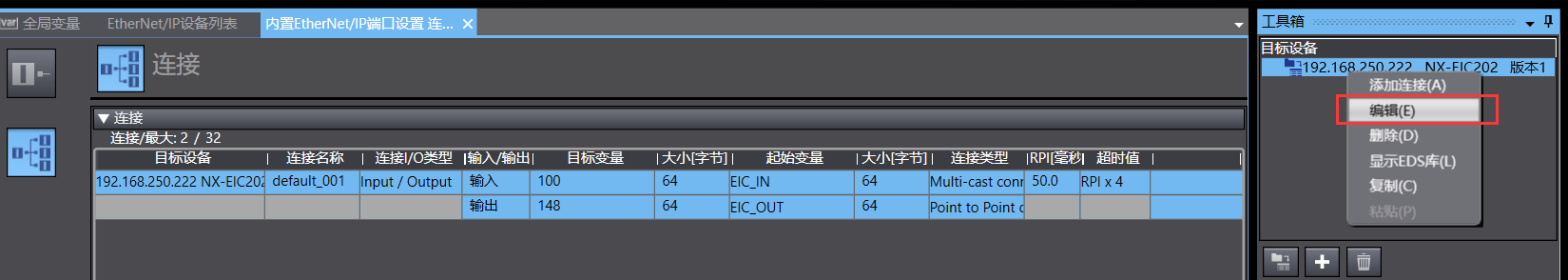 NX/NJ和EIC做EIP通訊,沒有啥設定,一般就是IP地址。如果用Sysmac Studio做EIP的標簽連接的話,注意一下下面的地方。