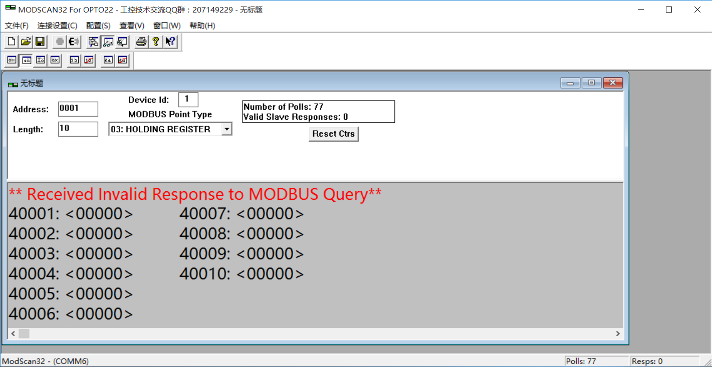 用ModScan32監控也是通訊有問題,也一直找不到問題在那里