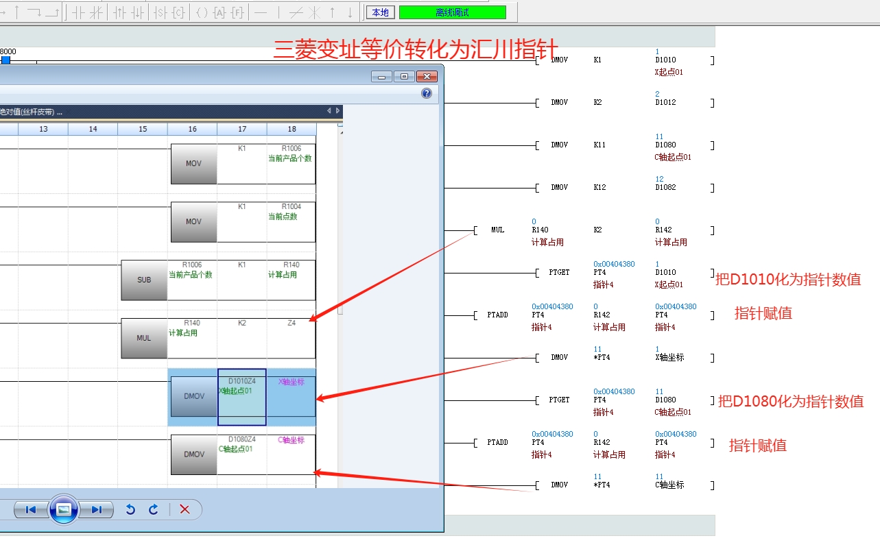 引用引用樓主夢(mèng)雨天涯于2024-08-30 12:33發(fā)表的 三菱變址等價(jià)轉(zhuǎn)化為匯川指針 :如圖,老板為了省錢,需要把三菱5U+松下A6的伺服,更換成匯川H5U+匯川660伺服,沒得辦法,指令要學(xué),變址要學(xué),總線要學(xué),以太網(wǎng)通訊也要學(xué),還要字符串提取變化,還有變址指針……