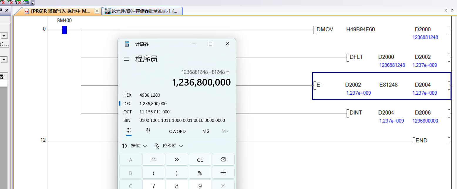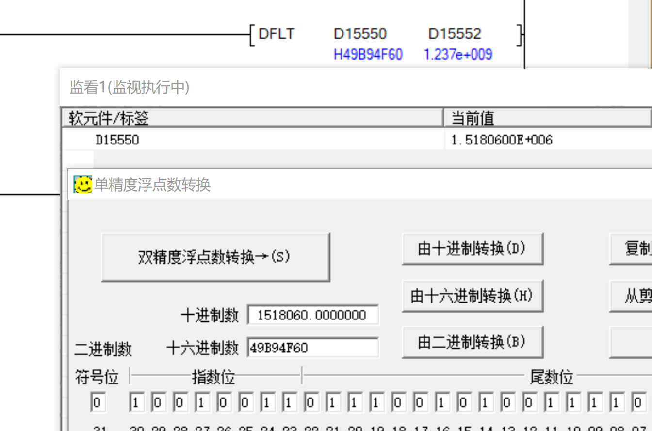 我用三菱觸摸屏,實數方式顯示49B94F60,也是1518060.0。