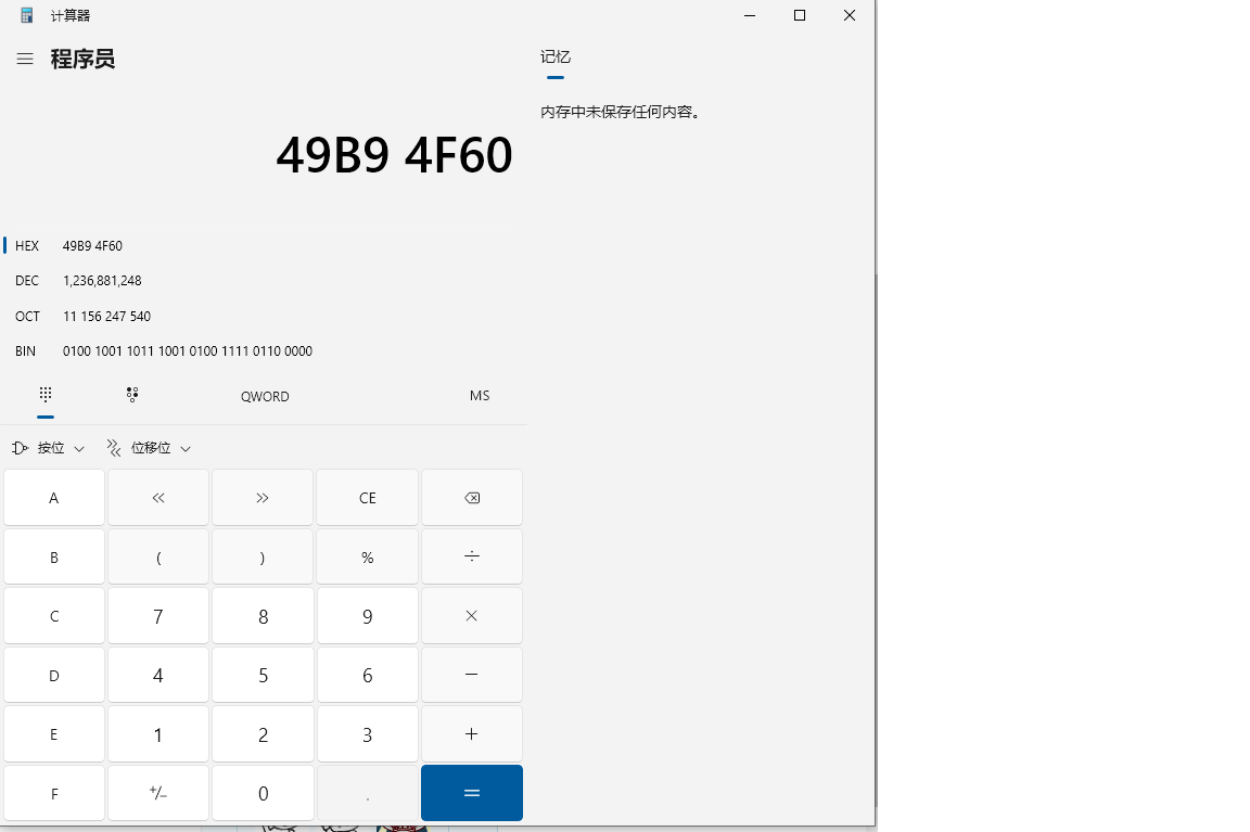 十六進制49B94F60, 轉換成十進制就是 1518060   ??????