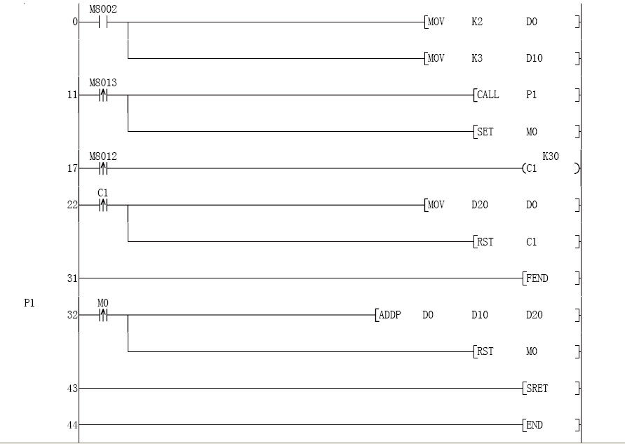 我想把D0 ,D10中的數據.做3秒一次的重復累加.程序如圖示,