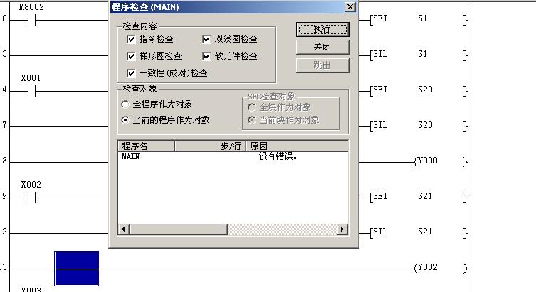 圖2 的語句明明是正確的,但圖1梯形圖所示就不正確了,程序檢查的錯誤提示為:STL指令中有MC,MCR。