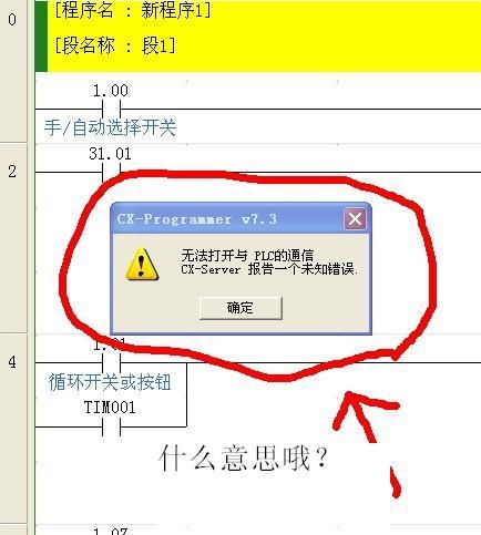 說我打開的軟件多嗎,我就打開了CX-Programmer7.3一個,電腦重啟也沒用哦!除非電纜、PLC、電腦有問題嗎?沒有!因為同樣的軟件,同樣的PLC,同樣的電纜,我的另一個程序就可以,這個只輸入簡單的電機連動程序沒其他程序的就不行!莫非軟件工具欄或其他什么地方我開了什么東西導致不能通訊嗎