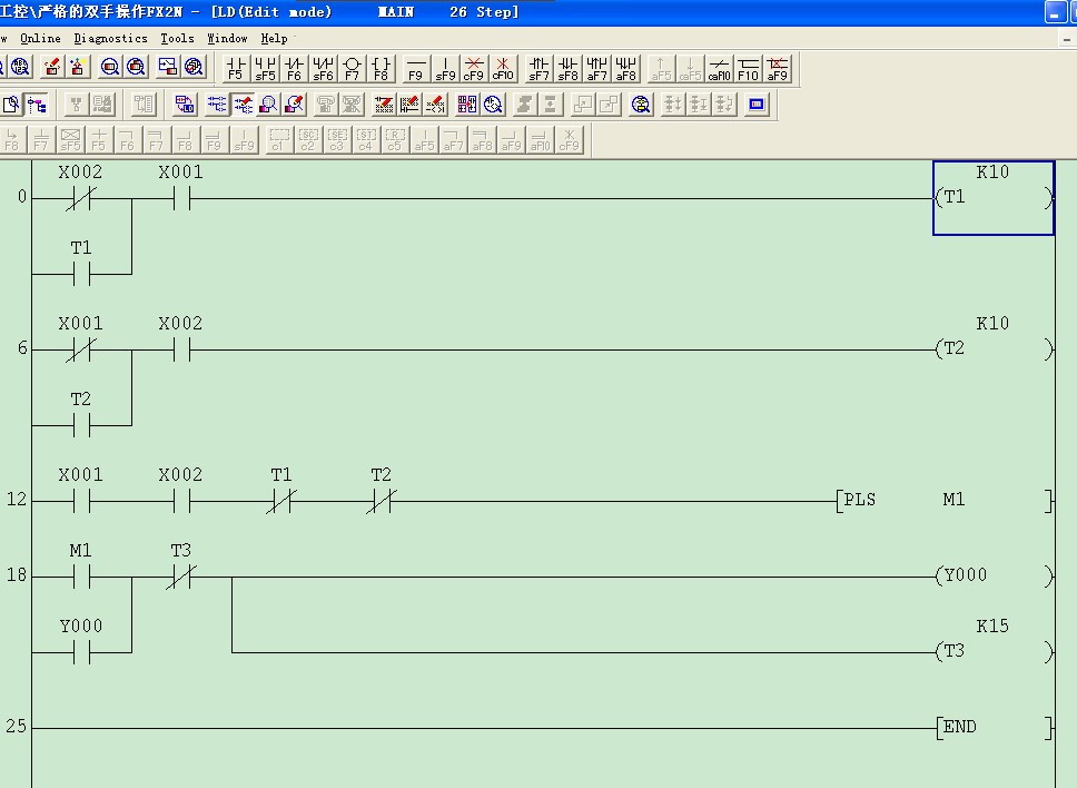 你這個程度不理想。一般是這樣的:LD X0 OR X1 OUT T0 K1 LD  X0 AND X1 ANI T0  OUT Y0