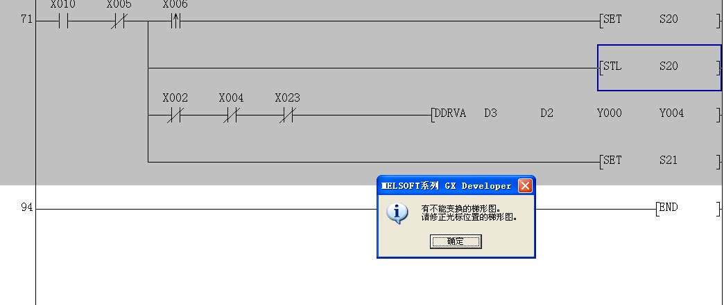 你還沒搞清步進指令的使用方法,是不能在一段同時寫SETS20,STL20.STL是步進指令開始。