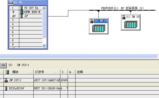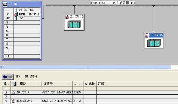 ,組態后進入硬件,然后進行ET200遠程站的組態,主站地址為2,兩個從站地址分別為1和3,波特率為187.5,因為空的IM153不能下載,所以小弟在兩個分站分別加了一個32點的DI模塊,但其實小弟的硬件是沒有這兩個模塊的,緊接著小弟就開始在線診斷了,診斷結果如圖