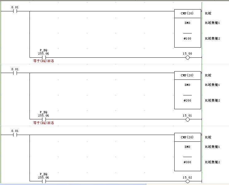 小弟有CPM2A PLC想與3個値比較 可是這個系列好像又不支持觸點比較指令,請問用什么指令可以代替