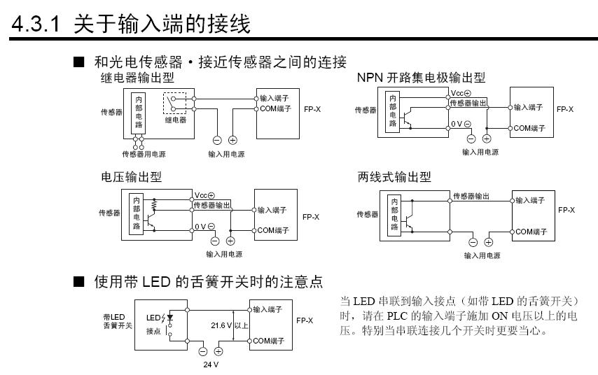 你應(yīng)該在COM和X間加24V電壓才有輸入。至于正負(fù)可由你自選,F(xiàn)P-X型對(duì)NPN,PNP都能用.