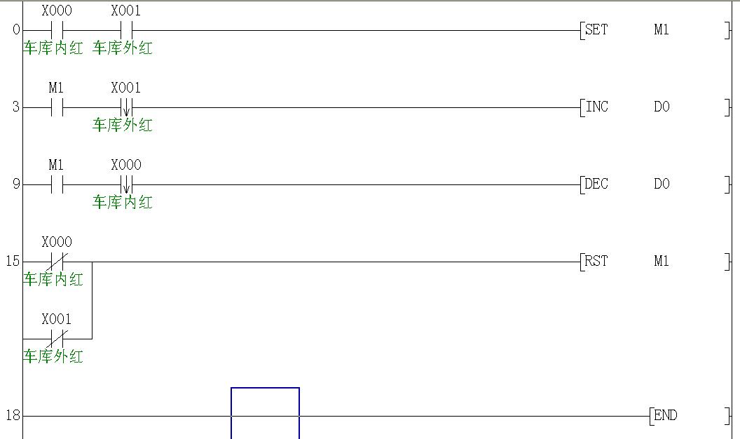 由于X0和X1只有各一個下脈沖,不管X0和X1哪個先OFF,M1就復位OFF,計數一次,也搞不清是進庫還是出庫。
