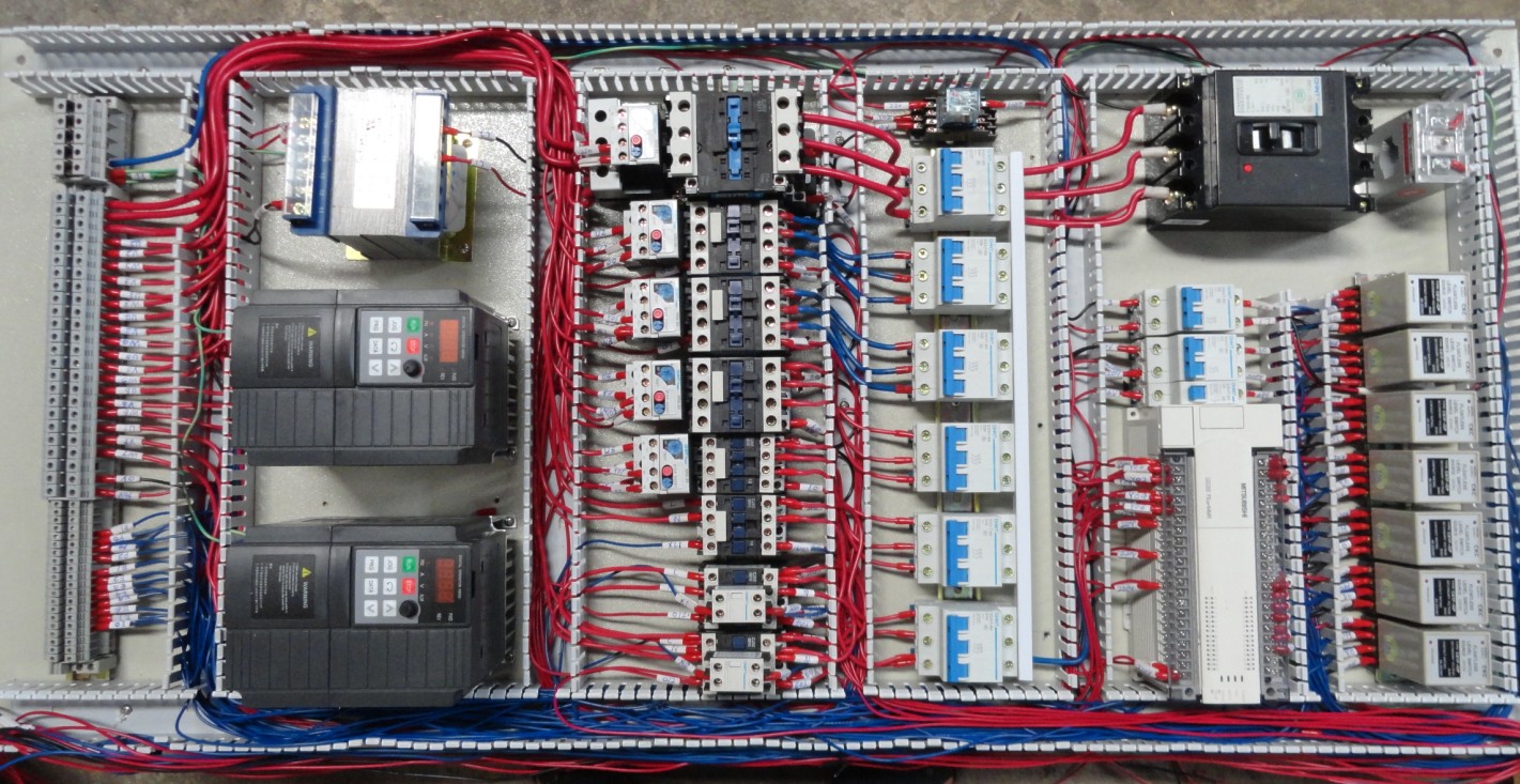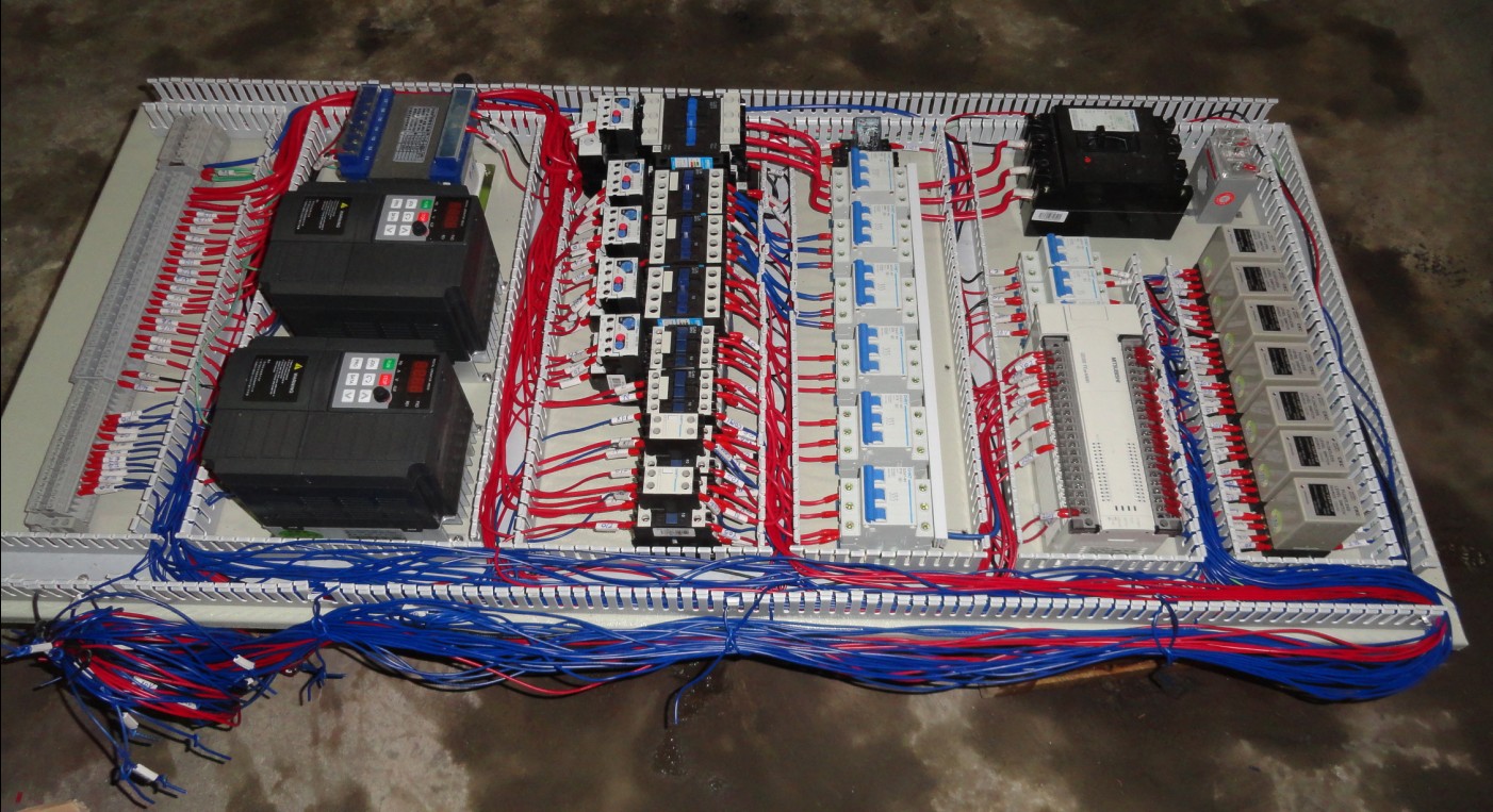 元件布置不美觀規(guī)范,接線工藝不是很好,配線的線顏色不對 般黃色配交流,信號線用黑色,直流+用棕色,-用藍(lán)色,PLCI/0接線端子一般是用白色齒形管打號套Y型冷壓端子,