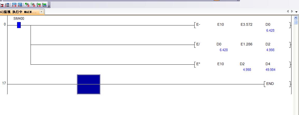 10((10-3.572/1.286)  請問這個用三菱Q  PLC程序怎么寫?