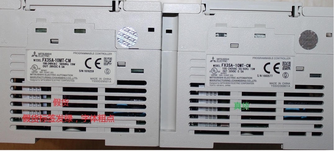 從去年開始,市場上陸續(xù)出現(xiàn)假貨FX3SA,FX3GA的PLC。 再加上之前早已出現(xiàn)的FX3U,FX2N的假貨。目前FX系列已經(jīng)假貨成災。