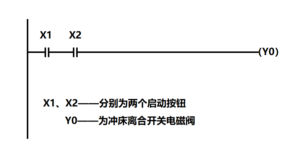 我不明白你們?yōu)槭裁床粚蓚按鈕(X1、X2)串聯(lián)在一起,使它們同時閉合后才能觸發(fā)Y0呢?