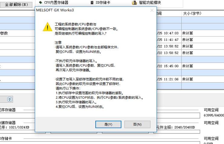 應該是PLC中的參數配置和你軟件中的不一樣吧,下載時候選擇參數加程序,單選下載程序就會報這個警