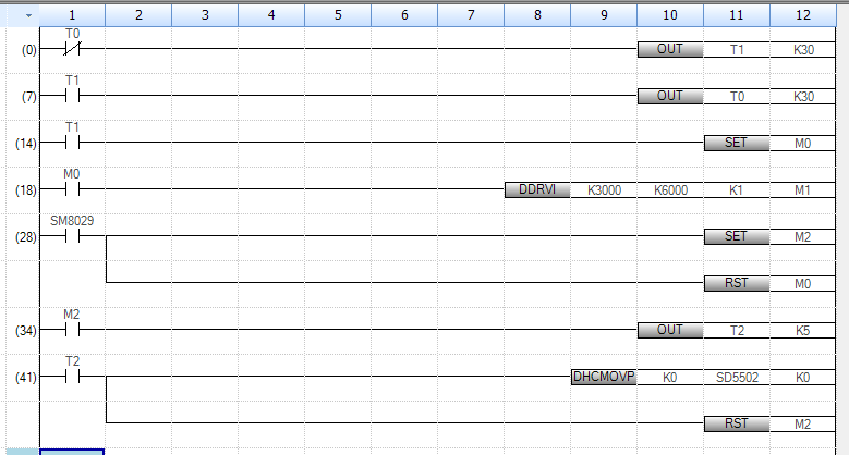 顯然你沒有仔細看5U的手冊,DDRVI后面用到的M,實際上占用了2個,也就是M1(定位OK)和M2(定位異常)。你直接用源程序的M1替代SM8029,然后置位M10,再用M10延時去清零就可以。