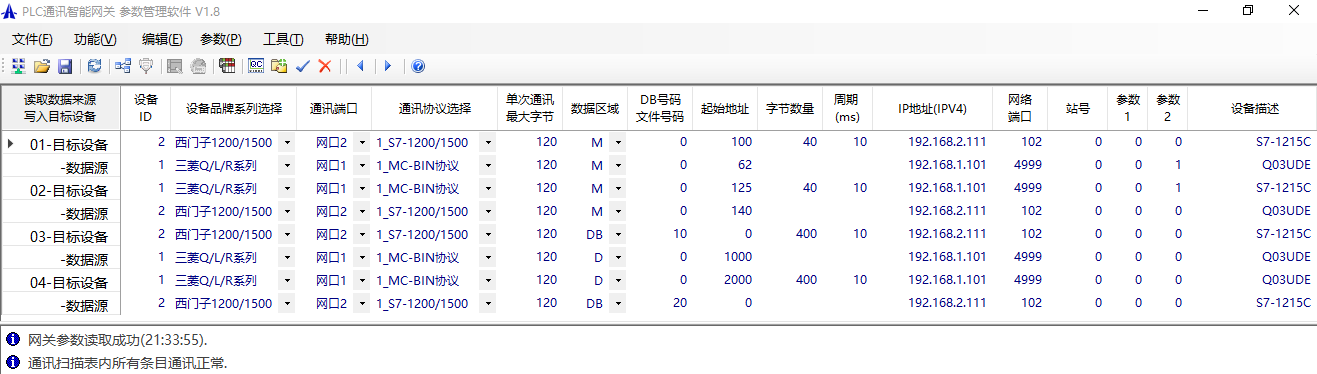 本案例是三菱Q系列PLC與西門子S7-1200的PLC之間通訊,選用智能網(wǎng)關(guān)模塊實(shí)現(xiàn),PLC通訊智能網(wǎng)關(guān)IGT-DSER支持各種PLC之間多對(duì)多通訊;PLC無需編程,方便快速實(shí)施;因?yàn)槭嵌嗑程的交互模式,所以可以保證高實(shí)時(shí)性;支持串口、網(wǎng)口通訊,以及WIFI、4G無線通訊。 想要實(shí)現(xiàn)的通訊任務(wù)如下:案例資料下載