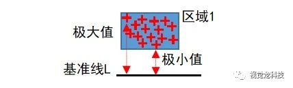 計算區域1內的白斑/黑斑到基準線最大極值或者最小極值。