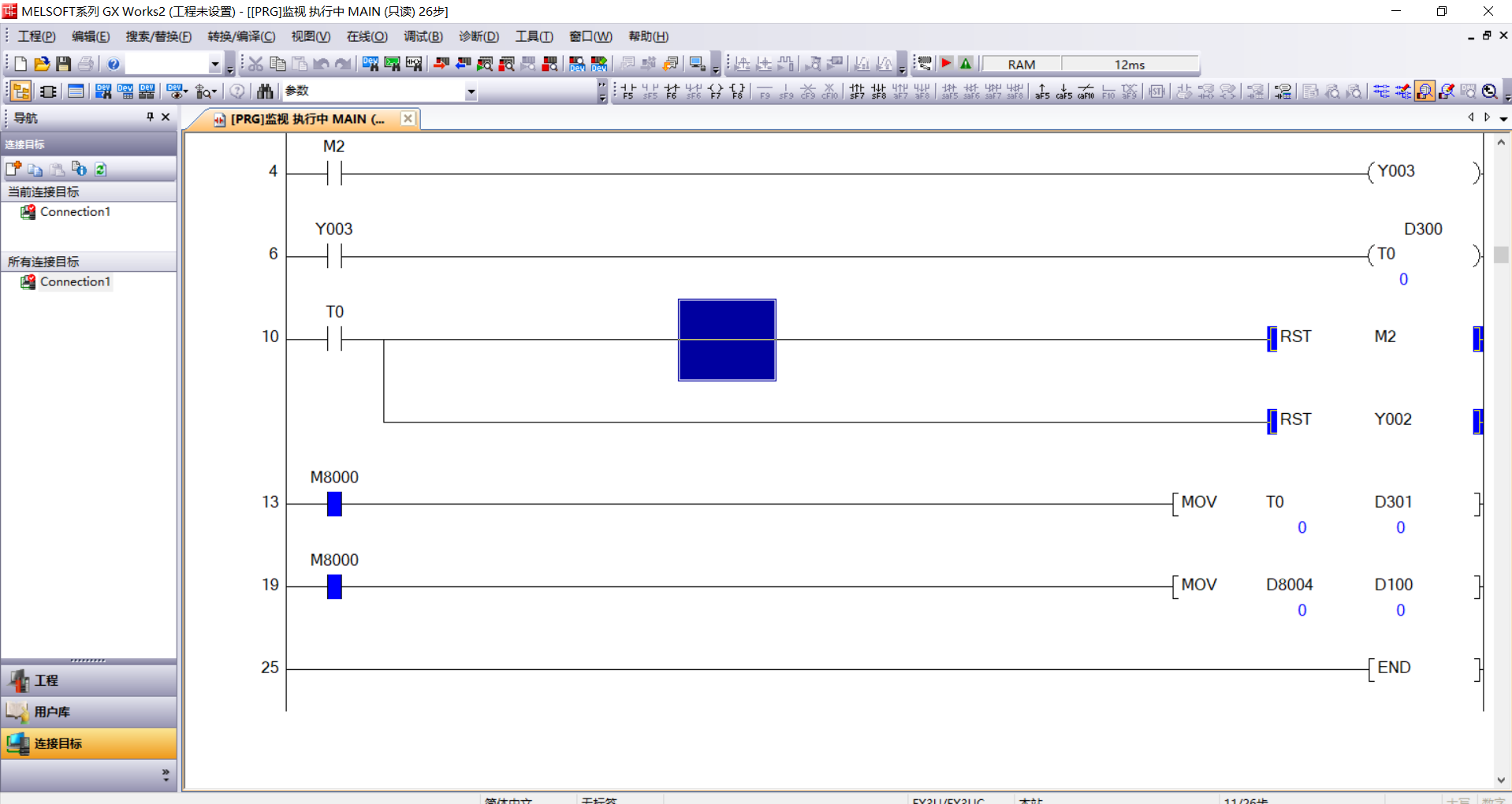 本人用一臺FX3U-64MT的PLC跟FX3U-ENET-ADP模塊連接,中間轉接板FX3U-422BD。設置如圖,F在出現問題:程序監控沒有問題,中途修改使用轉換+RUN模式寫入也能正常修改程序不發生錯誤,就是使用“在線”“寫入”時就出問題,當程序寫完準備打開RUN模式的時候PLC錯誤燈就亮起,通訊中斷,但是斷電重啟后由恢復正常,新程序也可以正常執行。ADP模塊是“POWER”“100M”“SD/RD”三個燈亮。