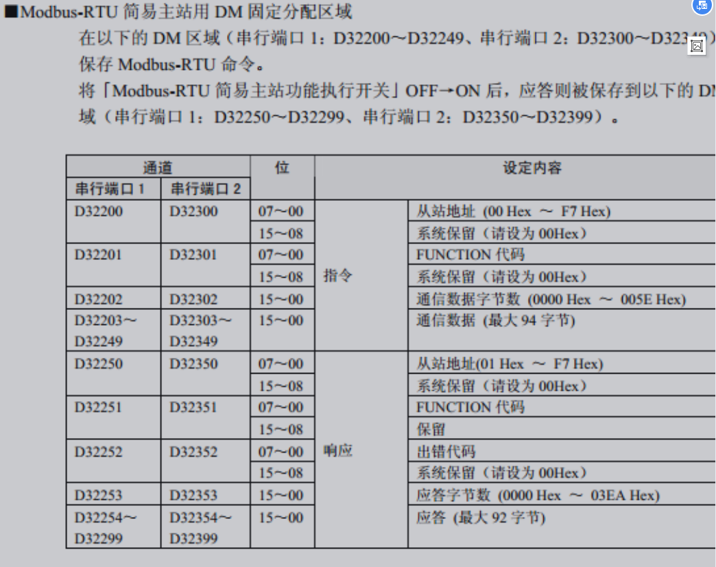 引用引用樓主yangzhisang于2021-05-18 17:42發表的 關于MODBUS-RTU與串口無協議通訊 :此器件可支持MODBUS通訊,但數據格式與歐姆龍的定義不一樣。所以只能用串口無協議來做.......