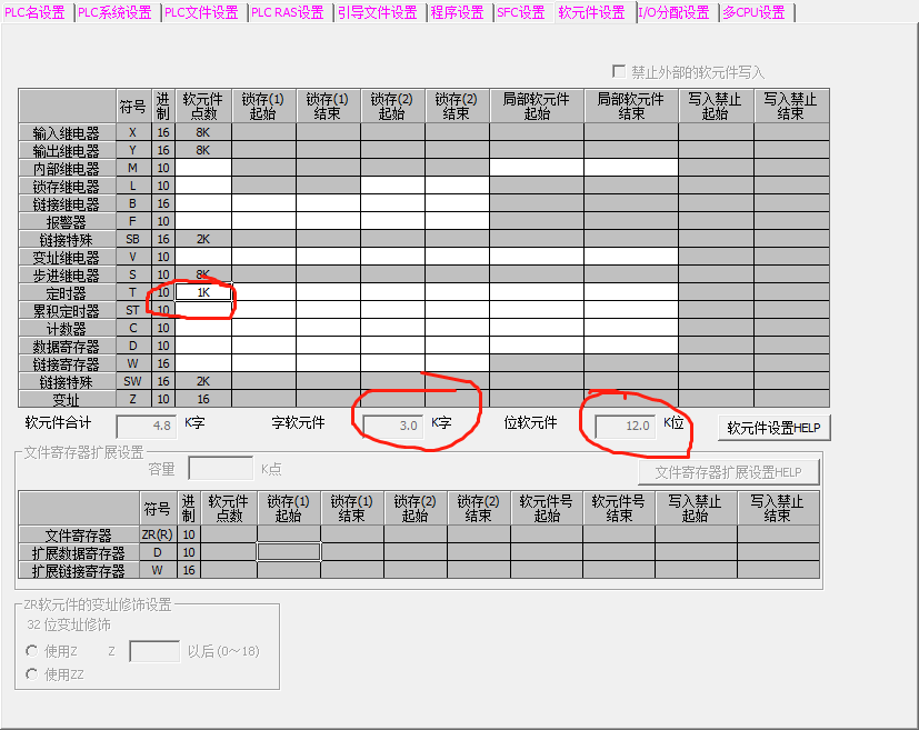 其中每個不同型號的plc的軟元件點數容量不同,有時候數據用的多,需要分配下不同軟元件的范圍