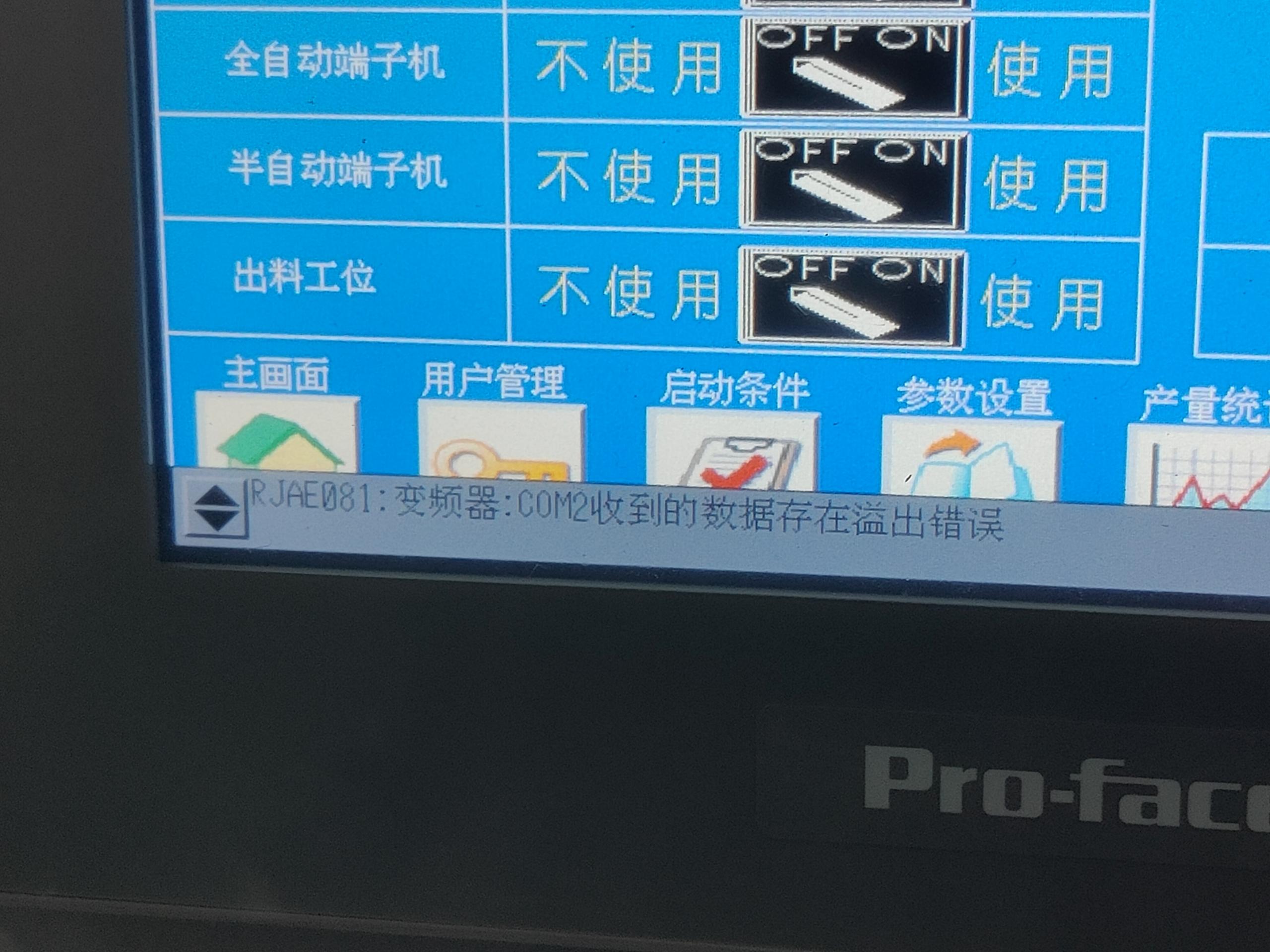 現(xiàn)在proface的觸摸屏跟歐姆龍變頻器串口通信,當(dāng)前狀態(tài)是可以通過觸摸屏修改變頻器頻率,但是每次數(shù)據(jù)傳輸成功都會(huì)有報(bào)警,如圖所示,com2收到的數(shù)據(jù)存在溢出錯(cuò)誤,和com2收到的數(shù)據(jù)存在奇偶校驗(yàn)錯(cuò)誤,這個(gè)報(bào)警不太明白怎么回事,我不需要知道變頻器接到信號后,反饋的內(nèi)容,觸摸屏也沒有設(shè)置接收,只有個(gè)賦值到變頻器地址的腳本。
