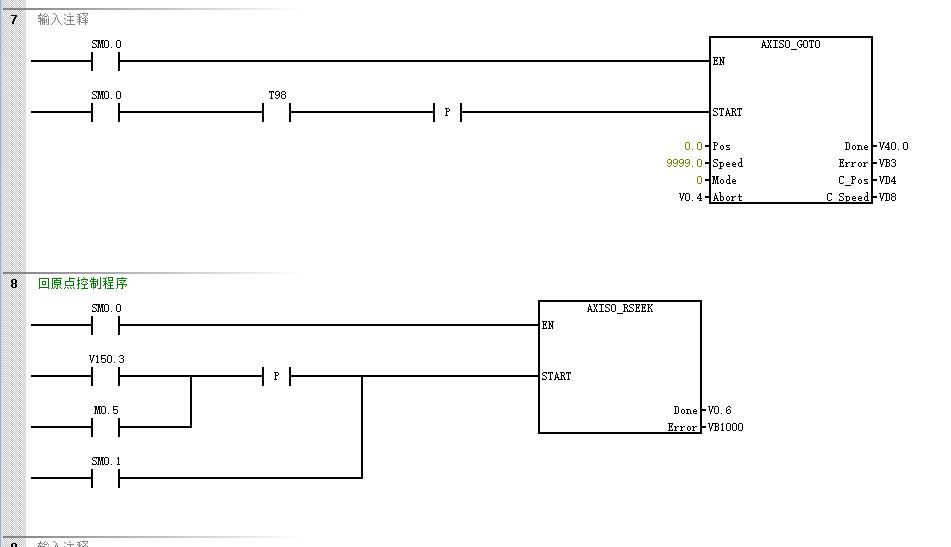 也就是用最后一次定位網絡7的定位完成V40.0,代替網絡8的M0.5, 這樣網絡7定位完成后, 才執行網絡8回原.