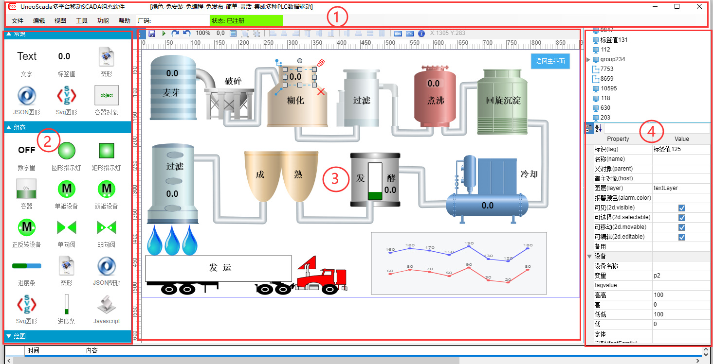 體積小, 免安裝,多功能的組態(tài)軟件uneoscada軟件,主要優(yōu)點及功能如下: