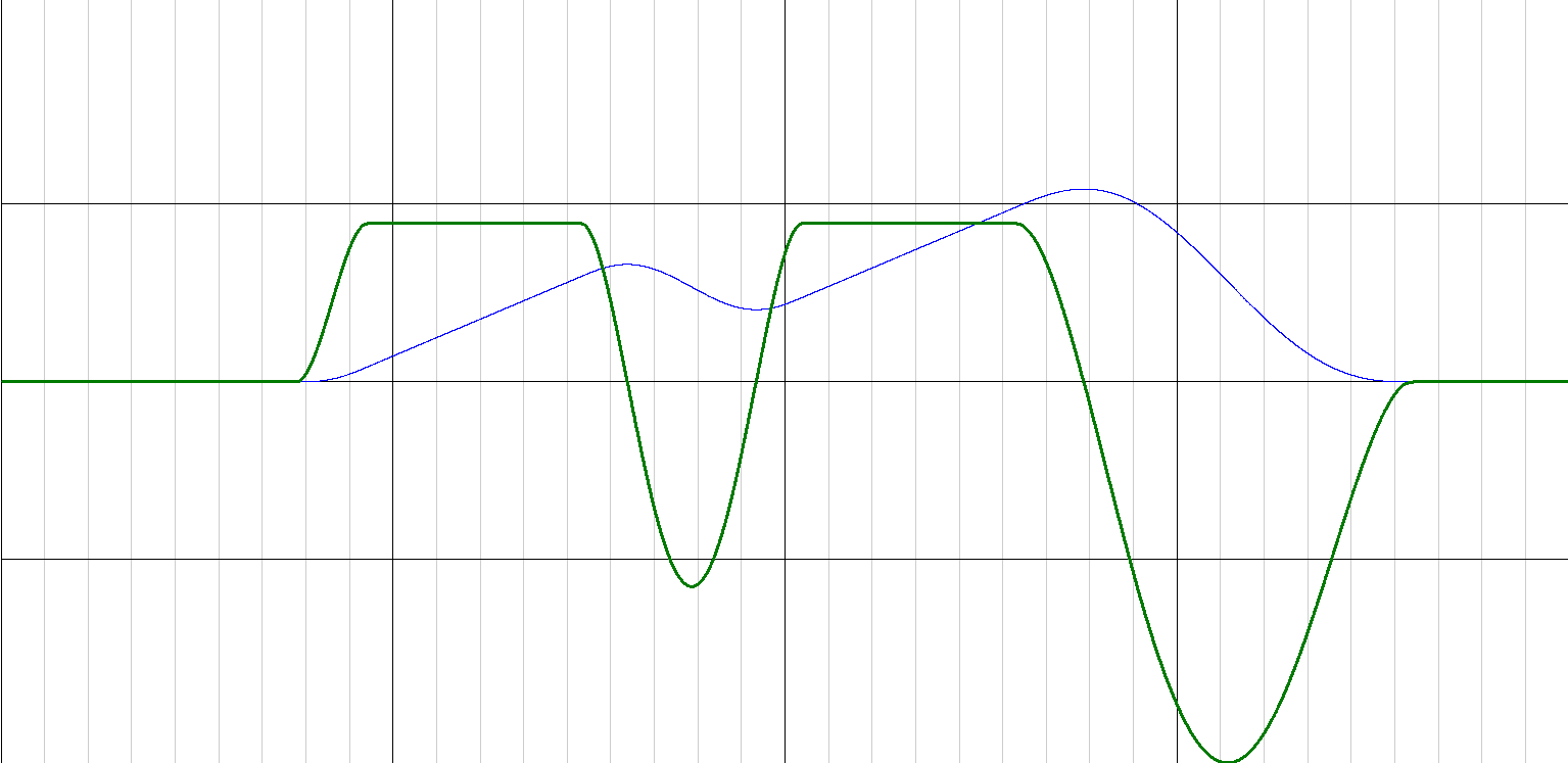 通過以上公式可生成位置&速度連續的凸輪曲線(加速度存在突變,加加速度存在沖擊)