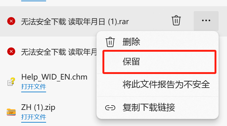 引用引用第3樓wzbarley于2024-04-23 10:41發(fā)表的 :使用Edge瀏覽器會提示無法安全下載,點擊保留即可下載。 [attachment=298612]