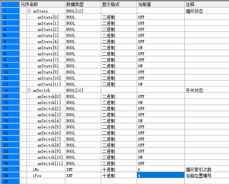 我也來湊湊熱鬧,偷個懶就不寫自動程序了,問題的關鍵就在于計算下一個首先為ON的開關距離本次停留的位置間距而已。如上圖1234,開關號和位置號從0開始。開關1.4.10為ON,在1號開始時2.3.不停留下次定位到4、增量為3份間距,4號開始時5.6.7.8.9.不停留下次定位到10、增量為6份間距,10號開始時11.0.不停留下次定位到1,增量為3份間距。如上圖5,僅有1號開關ON,則下次定位12份間距既一整圈重新定位到1號開關處。