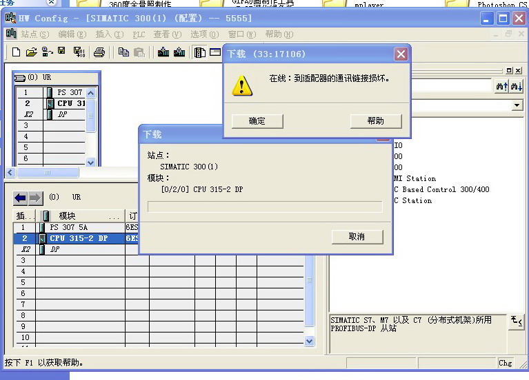 我試過了,還是不行,我用的USB/MPI+編程電線,可能用原裝的通訊線可行,可惜沒有原裝線。