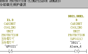 樓上你不是已經自己找到了嗎.報警來源是QF0221開關動作.注釋是控制柜冷卻器保護了.具體做在背景塊DB21上面.位地址DBX1.3.