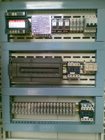 我一看這個保險(xiǎn)座我就頭痛,碰到大的震動就松了,無故短電,建議換成熔斷器.斷路器放在左邊,然后在旁邊放你那兩個變壓器.plc旁邊是保險(xiǎn)和中間繼電器就行了,最后一行就是你的保險(xiǎn)對.還有就是你的斷路器我想是放在電箱的側(cè)面開個口,讓用戶可以用手搬得到.
